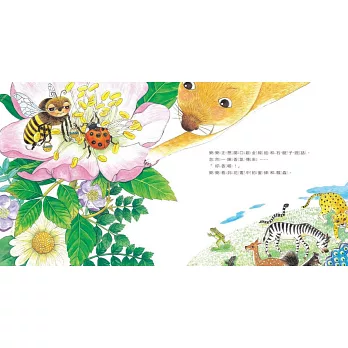 生態繪本作家陳麗雅突破畫風最新創作,以深厚的繪圖功力細膩描繪出一個簡單有趣的動物故事,書中如同以往也有一張展開的大拉頁,呈現每一種動物由小到大的樣貌,另外還精心設計了特殊的階梯摺,讓孩子讓點名般一邊數動物、一邊觀察,加深印象。她認為生活中的每一件事物,不是只有一種分類標準,因此安排一場趣味的蒐集遊戲,將大小、分類、形狀等概念巧妙的融入故事中,不但讓孩子認識了各式蔬果和動物的特性,同時引導孩子由不同的觀點、視角,看待具象的物體和抽象的概念,隨時轉換做組合性的思考,很適合親子一同閱讀與討論。