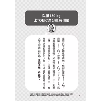 「不只是肌力訓練,還是一本富有啟發性的書本,讓我重新反思人生。」