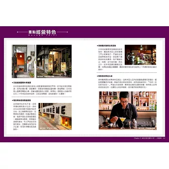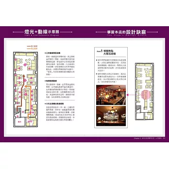 不再「我好喜歡這間店,但是說不出為什麼……」,完整的商業空間裝潢元素分析,燈光、顏色、吧台設計、桌椅、音樂、藝術品擺設……,沒有複雜難懂的裝潢用語,淺顯易懂易上手的學習書。