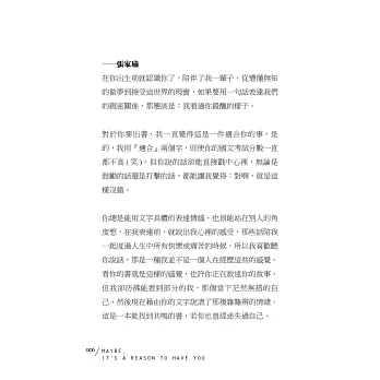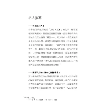 這件事需要一種豁出去的、傻乎乎的膽量。在這本書裡,你可以看到這種勇氣,還有一顆真心,你會想起曾經遺失的某部分的自己。──阿賣(創作歌手)