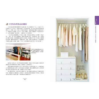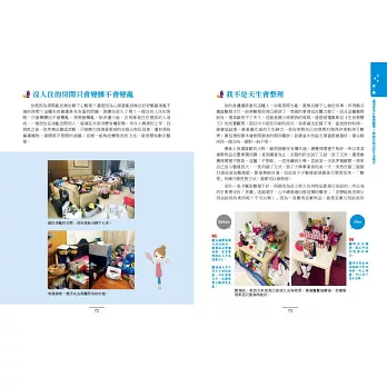 有趣的是,請我去整理家的人,通常書架上都有幾本和收納相關的書籍。這些人都有整理、收納的基礎觀念,也真的有心想整理家裡。但在看完書之後,腦子裡雖被書本中精美的圖片燃起整理魂,但這些人依然不知道如何開始整理;展場的收納盒買了又買,但家裡和展示空間完全不像;整理了無數次,過沒多久又亂了!所以當日日幸福出版社找我出版書籍時,當下便立志要寫一本所有人都看得懂的收納書,而且「看完書時,可以非常清楚第一步應該如何做」的工具書,希望能藉由這本書告訴大家「只要用對方法,整理好了,就不會再變亂了。」而且除了收納技巧之外,更重要的是,任何不需要的物品請勿帶回家。