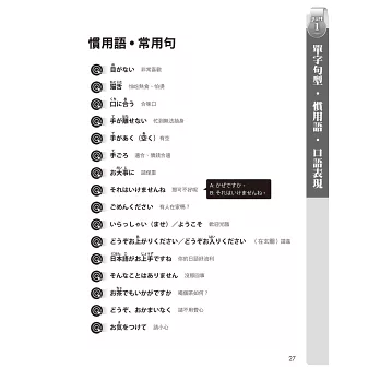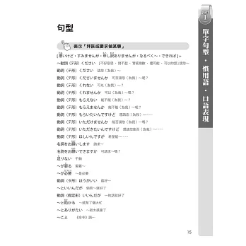3. 清晰的品詞分類與慣用句整理,易記易懂,必能幫助學習者提昇整體日文程度,合格大丈夫!