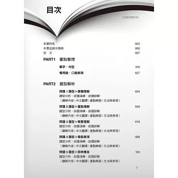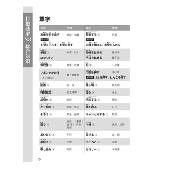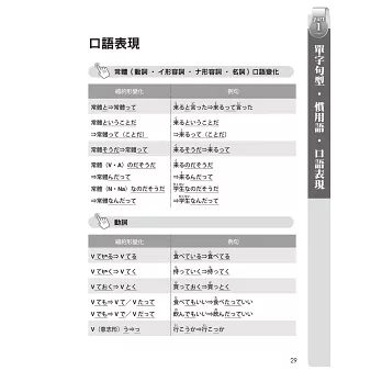 Part1部份老師整理出N3必考「114個單字」、「29組文法」、「33句慣用語」以及「口語表現」,讓讀者事半功倍地學習。