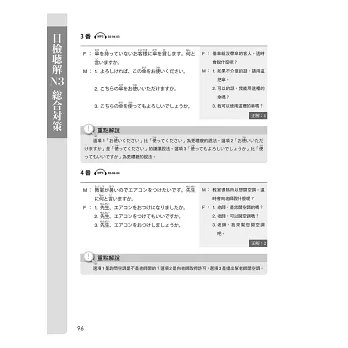 2. 詳加整理解題流程,清晰易懂,針對各題重點與學習者易錯的部份加以解析,有助克服聽力上的弱點,增進實際日語程度。