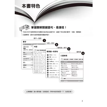 1. 生活化、實用化:對考試中常見的語彙及句型有極為詳盡的整理,且貼近日本人的日常生活用語情境。本書希望對學習者而言並不僅是準備考試,更有助於提昇整體日語應用能力,一舉數得!