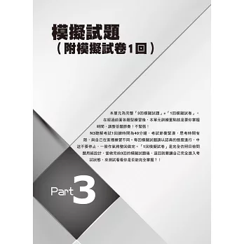 本書獨家「N3必考重點整理」x「3+1回模擬試題」x「90天讀書計劃」