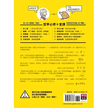 過去讀哲學是門硬知識,但本書兩位作者以「笑話皮,哲學骨」告訴你,哲學應該不正經,因為沒有標準答案,只有你的答案和我的答案。