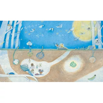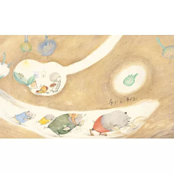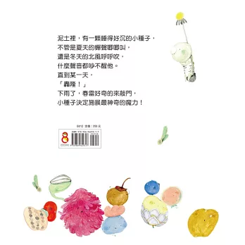 旁邊鼴鼠一家經過,沒吵醒他,挖洞的小狗引發了一些震動,沒嚇醒他,地面上經過的人、拍球的人、腳踏車的聲音,對他來說,一點兒也沒影響。其他的種子陸陸續續發芽,一天一天長大,只有小種子一直一直沒動靜,也一直一直沒有被發現。