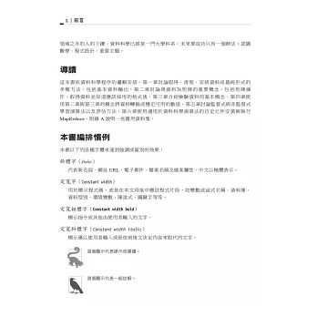 你會學到資料I/O、線性代數、統計、資料操作、學習與預測,以及Hadoop MapReduce在程序中扮演的角色。本書的程式範例可用於你的應用程式。