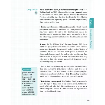 May老師的上課風格活潑犀利,口說課堂上特別強調批判性思考的訓練。藉由一來一往緊湊的對答引導,許多原本說話空洞、論點薄弱的學生,明顯進步到開口言之有物,論述條理清楚,層次分明。為此,May老師一直在構思如何把課堂上的邏輯訓練呈現在紙本上,以幫助考生突破盲點。這本書,就是她與多年合作伙伴Amy老師提出的高分應考對策!