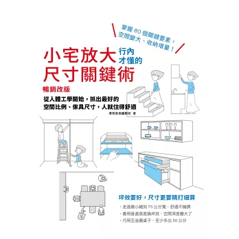 本書依照空間分類,從玄關、客廳、餐廳、廚房到臥房,依照一日的使用動線解析各空間最合宜的使用尺寸,透過詳盡的手繪插畫和實際案例的示範,解決讀者最煩惱的格局配置、收納機能、傢具挑選的疑問。