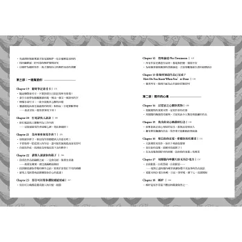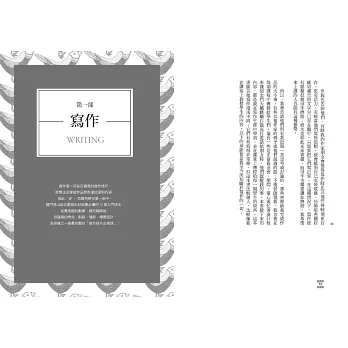 安.拉莫特是現今美國最具影響力的寫作導師,在本書中,她道出了所有出色的寫作指南都沒提到的關鍵要點,並針對4大創作面向:「技巧」、「心理」、「日常」、「出版」,給予最私房的經驗傳承。不管你寫的是小說、報導、評論,還是文案,她都能讓你寫得更加自然流暢,且深刻動人!而且,寫作本身已經夠孤獨、折磨人了,所以你更需要這位極具幽默感的老師!
