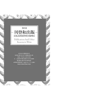 →寫作本身才是最可貴的獎賞。若你心裡想的是名聲和財富,出書這件事會讓你抓狂,因為書稿被採用的機率真的很低。