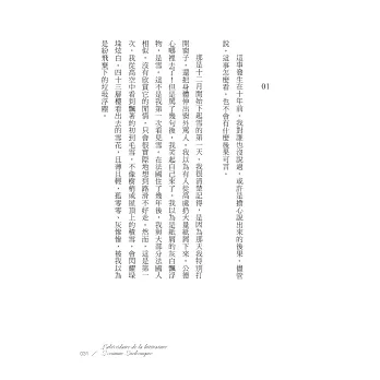 字母N到S探討文學的原創性,以當代小說形變社會與時空的既有疆域,讓人把自己從常俗的認知裡分裂出來,以便能在一切熟悉事物中,重新辨認重複與差異。文學的思考可以起自任意一個出發點,並將筆直的路途全新摺曲;以作品啟動無數的開始,小說家逐文學而居,引領讀者前往文學所生的棲地。