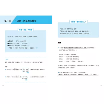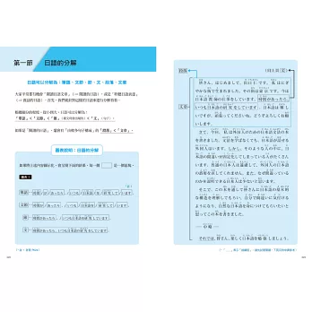 徹底分解日語結構,並針對「文句構成要素」,詳細解說「性質」「文句中扮演的角色」。理解本章內容,就能解決閱讀或是學習日語時「想查字典,卻不知道如何斷字」的困擾。