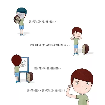 「藉由小主角的內在對話,孩子可看到如何把負面情緒轉為正面思考,讀完後,將產生滿滿的能量與信心。」──親子作家 Jaguar小姐