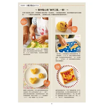 本書共刊載了39道從不用火、不用菜刀也能製作的簡單點心到為特別日子製作的特殊點心,介紹各種在「親子烹飪教室」中大受好評的食譜與新作。