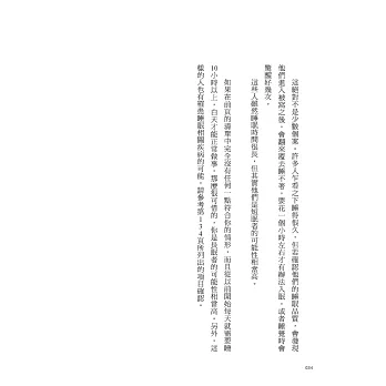 接著本書還會提到要如何在「早上5點起床」。本書將以數個成功改在「早上5點起床」的案例說明,對於平均睡眠時間為7小時左右的人來說,該怎麼用醫學上正規的方式來減少睡眠時間。