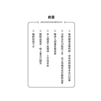 本書的目的不僅是單純減少睡眠時間,還要在睡眠時間減少的狀態下,保持良好的身體狀態,讓你能在輕鬆的心情下做更多其他事情。