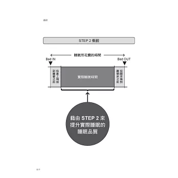 STEP 1要介紹的是如何盡可能地減少睡眠時「浪費掉的時間」。所謂浪費掉的時間,指的是蓋上棉被之後到睡著的期間,以及醒來後到從床上爬起來的時間。