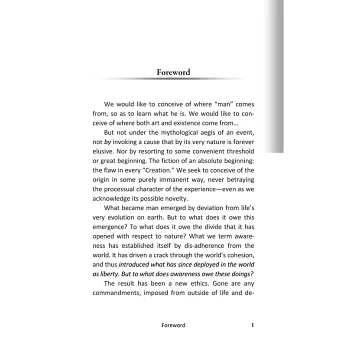 What elevated (s’est promu) as "man" had already de-coincided with previous animal forms (with other "hominids") by introducing an écart with respect to their preceding adaptation (by "ex-aptation," one might say). Whereas coinciding buries the possibility of consciousness, it is, on the contrary, by de-coinciding that consciousness can, by dis-adhering, break free and unfurl its capacity. (Zen too makes use of this effect.) Or, in still other words, the subject elevates by de-coinciding with its integration in a world. If to ex-ist is precisely to "opt to remain outside," then what one remains outside of is, first of all, the coincidence that constitutes the world. It is because they have been exiled from the perfect coincidence of terrestrial paradise that Adam and Eve can begin to exist as subjects and gain access to a History. If "man alone ex-ists," he does so insofar as he can de-coincide with the world and thereby introduce a margin of initiative or liberty. This de-coincidence is something art is duty-bound not so much to express as to activate.