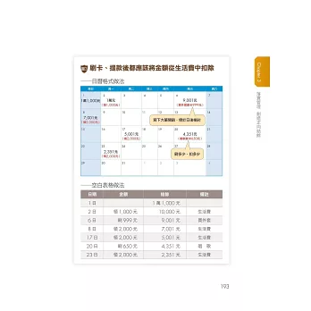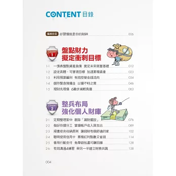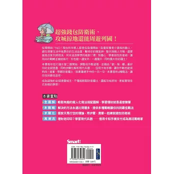 第三步,防衛疆土不流失!錢包防衛術的精隨在此,手中的一兵一卒都是寶,通通不可浪費!每天都在作戰,如何控管作戰計畫的執行程度,本書提供4種戰法,讓你找到最佳途徑。最後,強強聯手更能輕鬆打天下,如果你有同盟,不妨一同作戰,一個敵人、兩份戰力,9453!