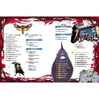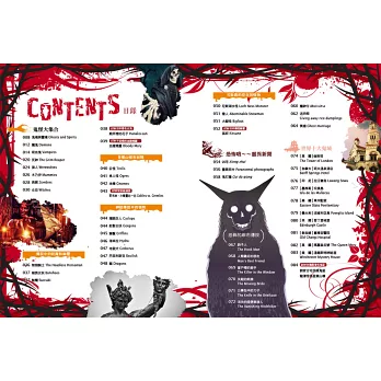 鬼魂與靈魂Ghosts and Spirits、惡魔Demons、吸血鬼Vampires、死神The Grim Reaper、狼人Werewolves、木乃伊Mummies、喪屍Zombies、女巫Witches