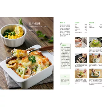 書中許多看似很難的菜色,做法卻出乎意料地簡單,將食材準備好後,放進烤箱就能輕鬆烤出噴香好滋味,再也不必費心看顧爐火,可以自由地去做其他的事,就算是完全不會烹飪的人也能夠輕鬆完成!