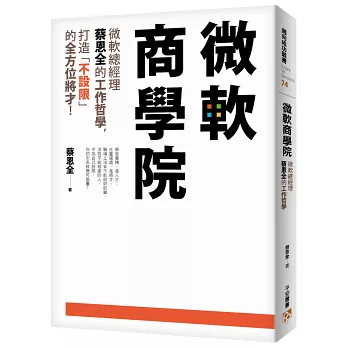 初讀《微軟商學院》書稿,令我十分感動,書中無私分享的經驗談,都是最真實的職場現狀,也是每一個企業對於夥伴們所懷有的期許。台灣已走過快速成長的高峰期,今時今日,時空背景大不相同,職場上的國際競爭與挑戰,已更加艱鉅,但成功方程式是有脈絡可循的,一如Davis在自序中所言,要透過自己的經驗給予年輕人一些幫助,讓他們在漫漫職涯及人生路途,少走一些冤枉路。