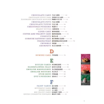 從餅乾及司康等大家也都很熟悉的英式甜點,一直到當地甜點或擁有濃厚傳統風味的甜點、或是近年來發展成一大產業的仙女蛋糕(即杯子蛋糕)等等,英國甜點不管是在發展歷程或製作等層面,其實都充滿著值得探討的樂趣。
