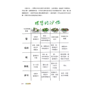 ★輕鬆又清楚說明料理基本四元素:鹽、油、酸、熱的作用以及對其他食材的影響。