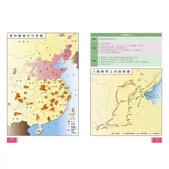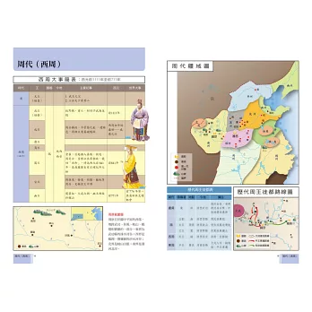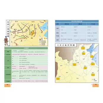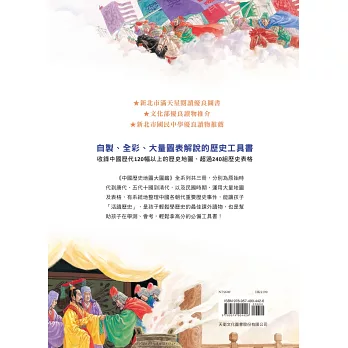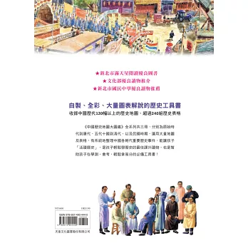 ●內容豐富:全書共收錄中國歷代120幅以上的歷史地圖、統整超過240組歷史表格,內容包括中國歷代大事年表、疆域範圍、政治建制、社會變遷、經濟發展、軍事外交、動亂憂患、民族文化、文學藝術、宗教信仰、教育學術等主題。