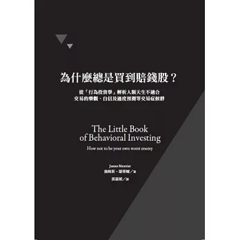價值投資之父班傑明 • 葛拉漢曾說過:「投資人面臨的最主要問題,甚至最大的敵人,可能就是他自己。」很遺憾地,這仍是現今投資人最真實的寫照。自信、樂觀、偏見、情緒化和過度預測等人類天性,只是導致交易虧損的眾多特徵之一。幸運的是,行為金融學的進展,已證明了所有投資決策都與心理因素息息相關,並成為投資研究開始正視的必修課題。