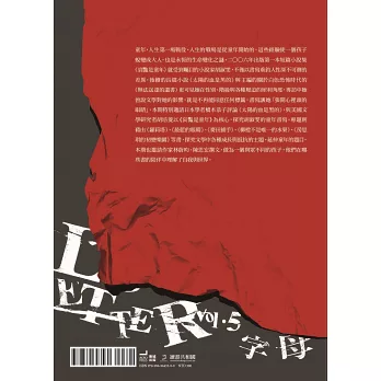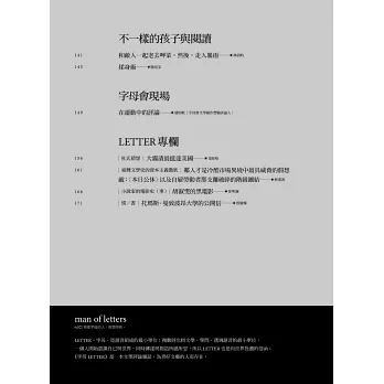 小說作者與讀者的出現,標誌著人類跨入自由時代。期待《字母LETTER》與字母會出版計畫能使每個翻開書頁的讀者,成為故事的繼承者,成為更自由的人。