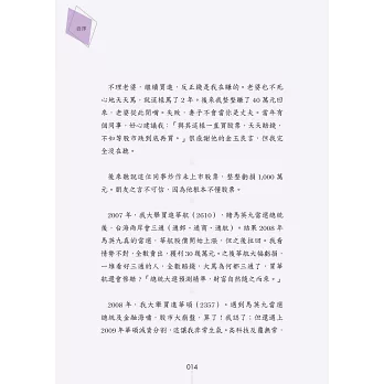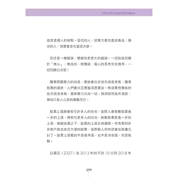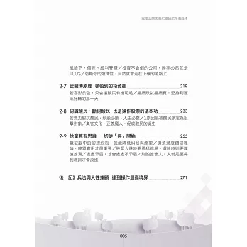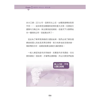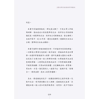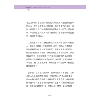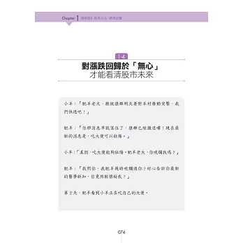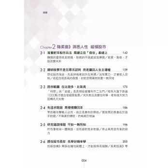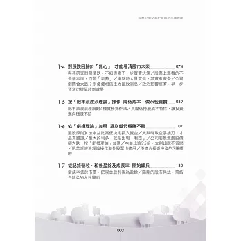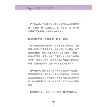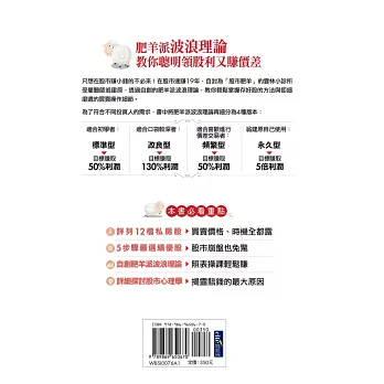 本書不討論財務報表,那玩意太難了,不是正常人所能夠理解,改以其他簡單的方法,來評估公司的財務穩定度。用這麼簡單的方法,來評估公司財務狀況,會正確嗎?我印象中,這20年來,還沒出過錯呢。「複雜的方法未必正確,簡單的方法未必錯誤。」本書不看畢卡索般的線型分析,不討論任何空洞的理論,一切都是以實用化為原則。「肥羊相信,理論始終來自於實際。」本書非常重視股市心理學,書中夾雜著大量的小故事。這是為了方便介紹一些心理學的知識。如果說股票兵法是堅硬的骨骼,心理學就是柔軟的血肉。只有骨頭的身體,不過是具骷髏。只有血肉的身體,注定癱軟在地。有骨頭,有血肉,才是一個完整的人。「孤陰不生,孤陽不長」,陰陽合一,剛柔並濟,是本人的思考邏輯。