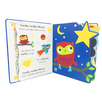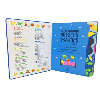 這是一本可以看、可以玩、可以學習的英文童謠遊戲書。書本一翻開就會看見無法忽視的超大造型頁面,讓孩子發出「哇〜」的驚嘆聲,如此一來,已經引起孩子的興趣,在學唱童謠的過程中練習英文發音,奠定自然發音基礎。