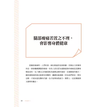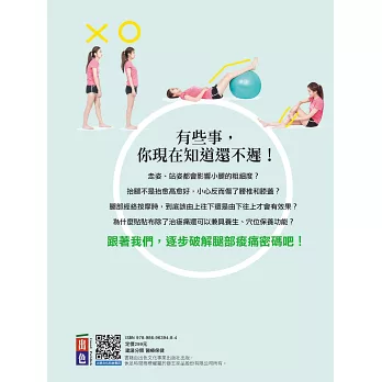 18區腿部貼布療法,讓你可以遠離腿部這裡痠那裡痛的問題。還有,經絡按摩、走路姿勢,就連抬腿都要抬對才有效。本書給你消滅腿部痠痛+水腫全攻略,從此擁有令人羨慕的腿部線條。