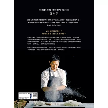 2015法國世界麵包大賽(Mondial du Pain)雙料冠軍陳永信,也是亞洲首位雙料麵包冠軍,理工科系出身的他,22歲才開始進入麵包界,從最基層做起,歷經學徒、三手、二手到出師,每天起早歸晚,待在炎熱的工作空間,卻是甘之如飴,因為麵包是他一生的志業。