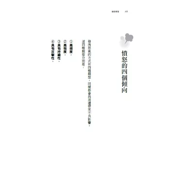一、從為憤怒平反開始,重新認識憤怒,了解憤怒的功能,以及四種憤怒類型。