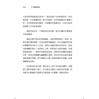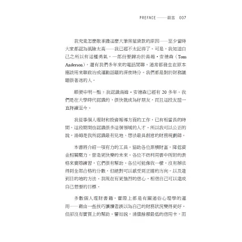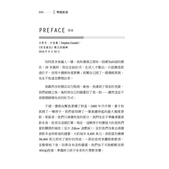 本書將介紹一項有力的工具,協助各位累積財富,降低資金相關壓力,營造更快樂的未來。各位不妨利用書中所附的表格來實際練習,它們很有幫助。各位可能像我一樣,沒有辦法得到全部合格的分數,但絕對可以感受到正確的方向,以及達到目的地的方法。我現在有更強烈的信心,相信自己可以達成自己想要的目標。