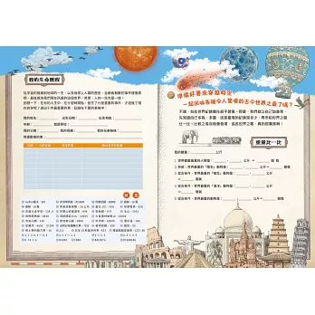 另外,書末將人類歷史濃縮為一星期、宇宙發展濃縮為一年,以這樣的尺度畫出的兩張跨頁大圖,讓我們一眼看盡歷史的更迭,更是不可錯過的內容。看過本書,你將對我們身處的這個世界,以及人類在世界中的定位,有更清楚的認識!