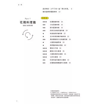本書介紹花捲料理、千層料理、凍派料理這三大料理,料理本身作法和材料都簡單易取得,均是平易近人的家常料理,只須要花一點心思和技巧,就能讓菜餚看起來既新奇又富含創意!餐具選擇與擺盤規則也扮演著相當關鍵的角色,無論再怎麼美味的料理完成後,會因擺放在什麼樣的餐具裡,而給人不同的觀感。會以本書裡所使用到的餐具,為大家介紹擺盤的基本規則。