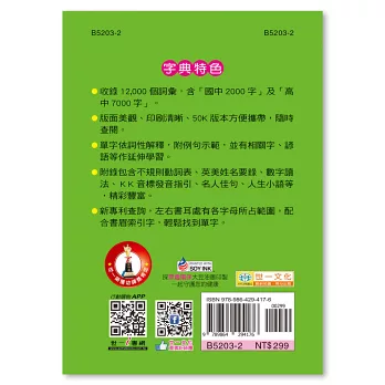 2. 收錄超過 12,000 個詞彙,含「國中常用 2000 字詞」及大考中心「7000 參考詞彙」。