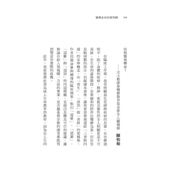 投入臨終照護服務十多年,陪伴許多末期病人及家屬走過生命的幽谷。