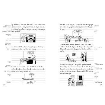 「葛瑞的冏日記」文字淺顯生活化,文法結構不超過國中範圍,插圖線條簡潔詼諧。中英對照的形式同時兼顧趣味與學習,作為中學生英文課外讀物,無論在難度或是趣味上,都是絕佳的選擇。