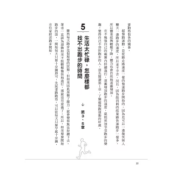 2、解決關於跑步的所有煩惱及彙整跑者想知道的知識,從運動生理學探討,具科學根據及實例,並提供馬拉松訓練菜單及注意事項。