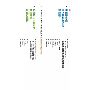 ◎全書教你如何利用「無印良品」的各式收納器具。