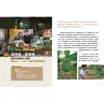 除了小農故事,還有使用食材創作的料理食譜,希望能給大家更多烹飪點子,善用食材,感受食物的美好。寫書的過程中我學到很多,從不同的農法,對事情的堅持與熱情,到拍照的技巧等,雖然還不夠完美,但至少已經踏上前行的路途。