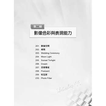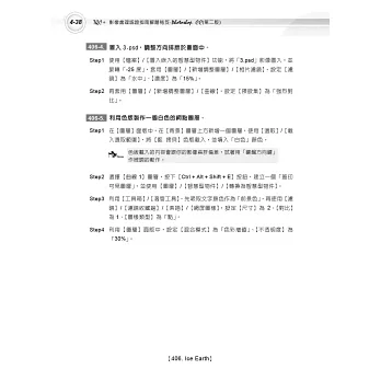本書的重點,除了幫助讀者順利的學習之外,對於Photoshop CC各項功能的應用不只能知其然,更能知其所以然。尤其書中的Note往往是點出您學習的弱點,突破學習障礙的關鍵,使您能將學得的技巧活用於生活中,而達到學以致用的目的。希望本會的用心能帶給您一個愉快且輕鬆的學習心境,而且能真正了解如何將之運用在生活或工作當中,發揮所學成為專業的設計人才。