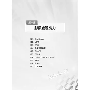 有鑑於此,本會為了建立使用者的學習信心和提高學習的成效,特聘請胡凱元老師親自解題並精心規劃撰寫『TQC+ 影像處理認證指南解題秘笈-Photoshop CC(第二版)』,期能以最完整最詳細的說明,一步一步引導您涉獵整個學習過程,而不致無所適從。